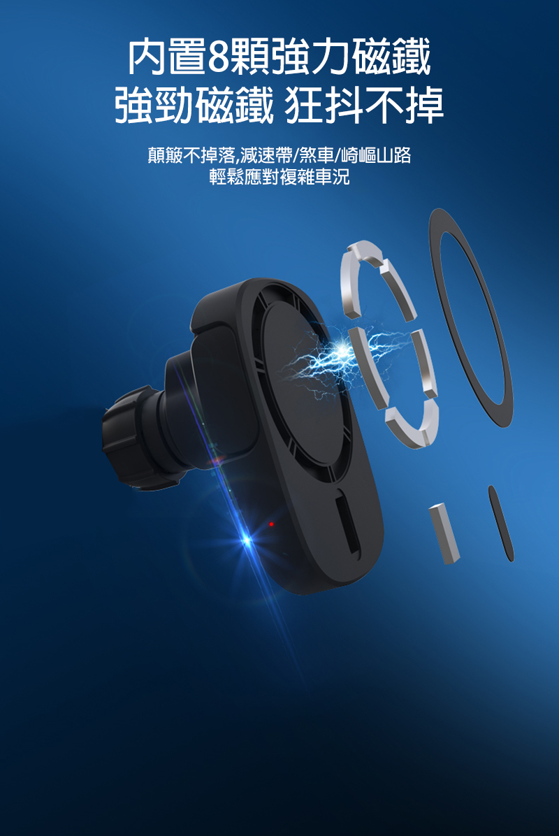 .內置8顆強力磁鐵,磁力強勁,狂抖不掉,輕鬆應對複雜車況
