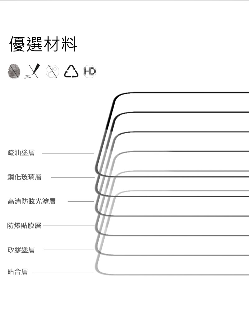 .選用日本進口AGC玻璃材質,防禦性能極佳,擁有極高透光率、高度還原螢幕原色彩