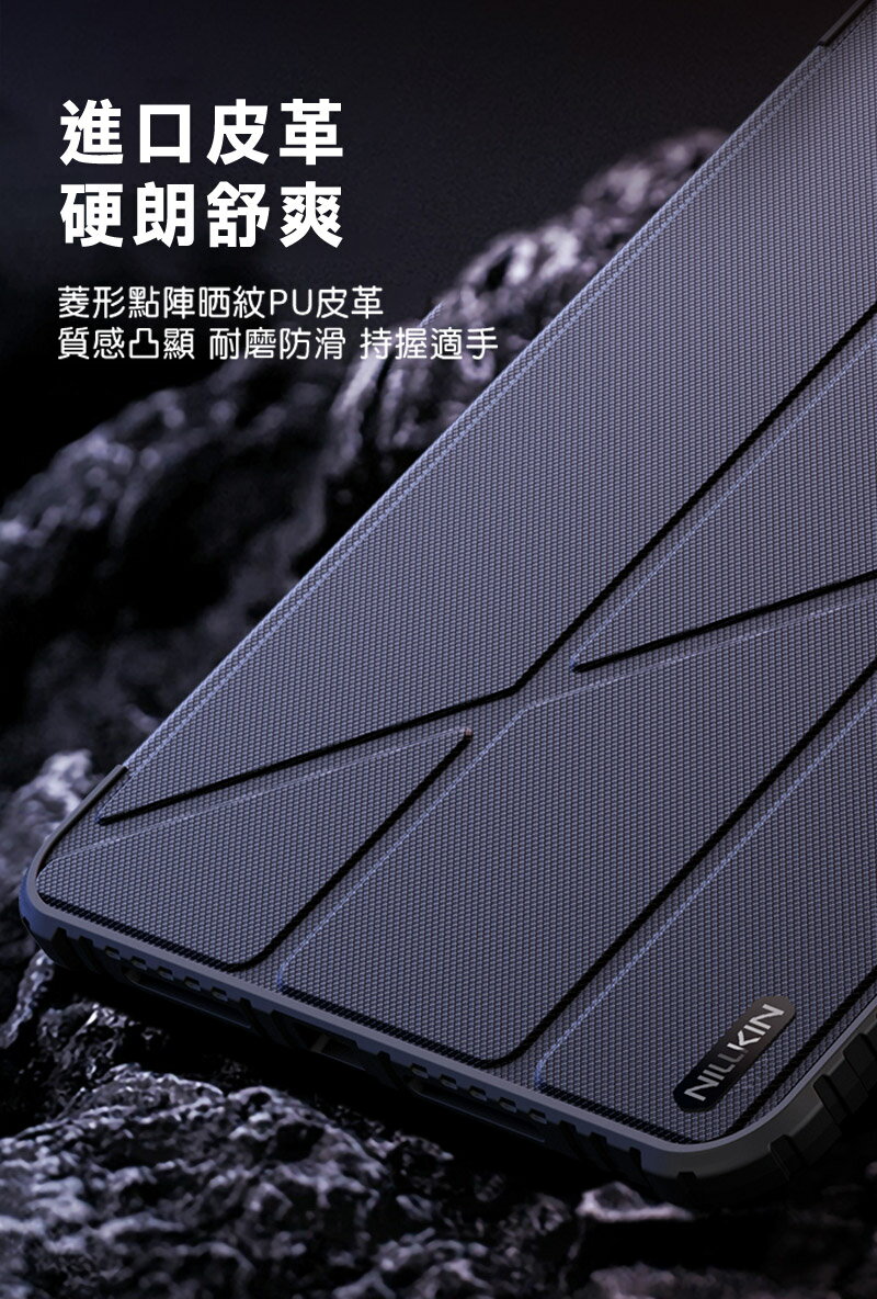 面蓋採用凸點曬紋PU皮革,多角度彎折設計,觀屏更靈活舒適