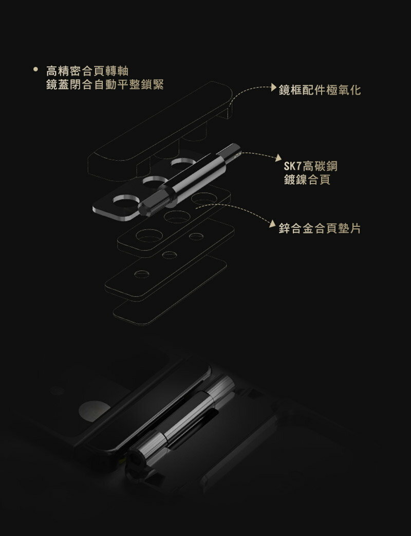 磁吸金屬鏡框支架設計,開合更輕鬆,兼顧鏡頭保護和手機支撐功能