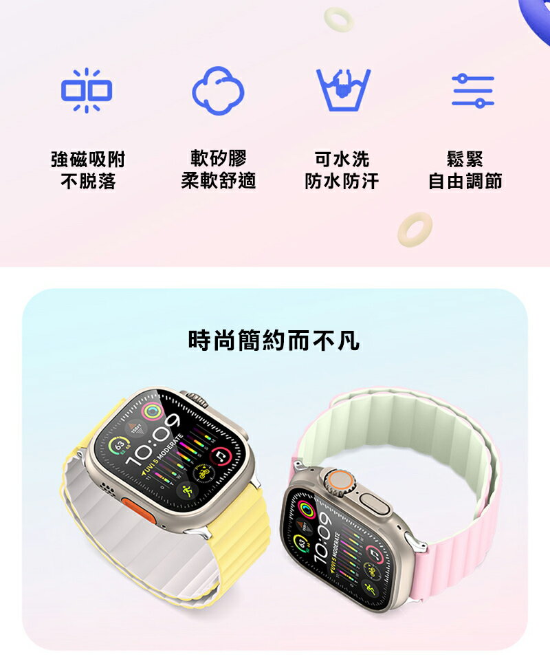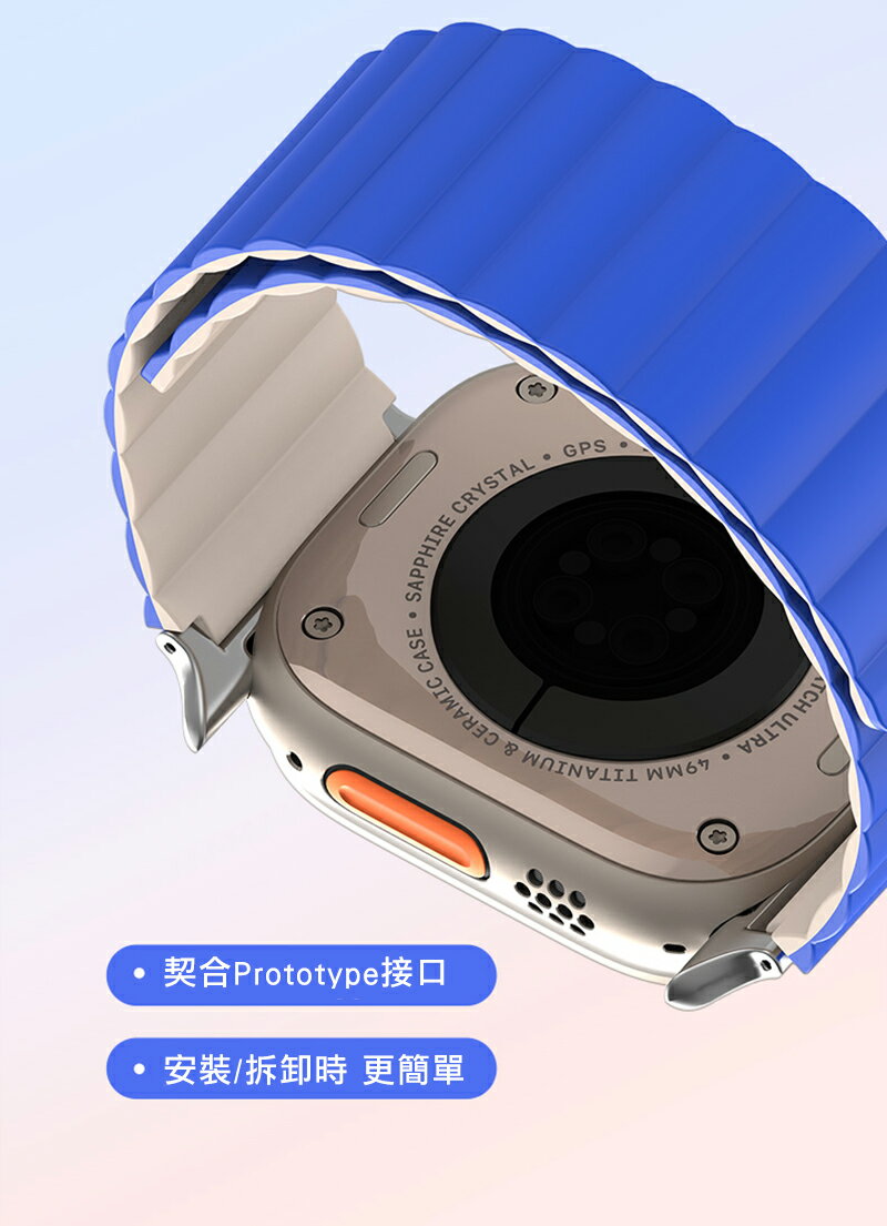 .適用機型:Apple 蘋果 Watch (38mm/40mm/41mm/42mm(十代)).商品材質:430不鏽鋼+磁鐵