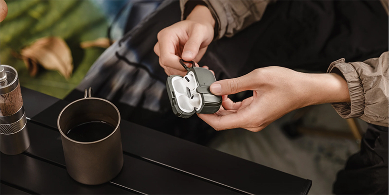 獨家保險扣鎖設計,能緊密鎖牢耳機殼主體,僅在按壓扣鎖下方才能開蓋,防止耳機在日常使用意外丟失