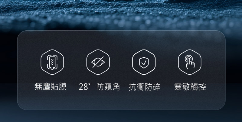 採用28°超窄防窺技術,確保螢幕內容僅您可見,隱私保護範圍更廣