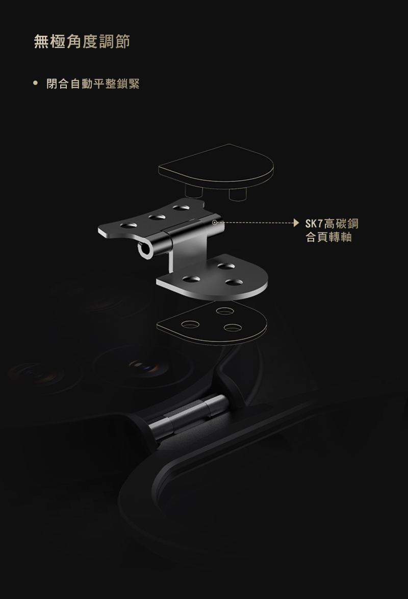 磁吸金屬鏡框支架設計,開合更輕鬆,兼顧鏡頭保護和手機支撐功能