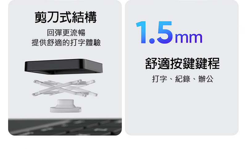 .剪刀式按鍵,回彈更流暢,提供舒適的打字體驗