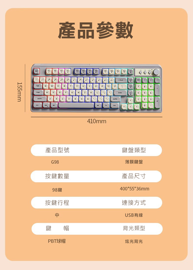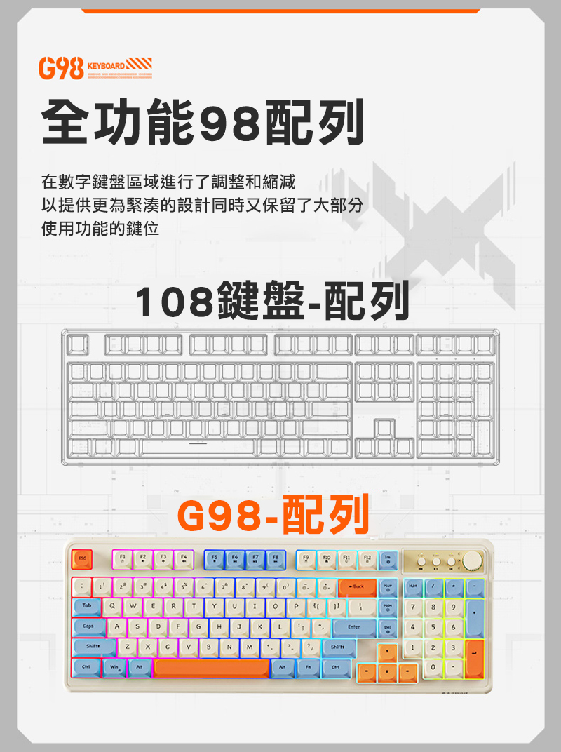 .內 容 物 :前行者 G98 炫光彩紅有線鍵盤*1