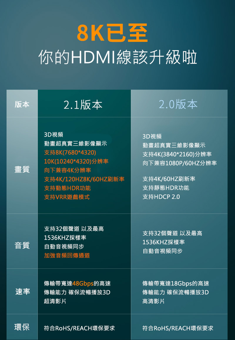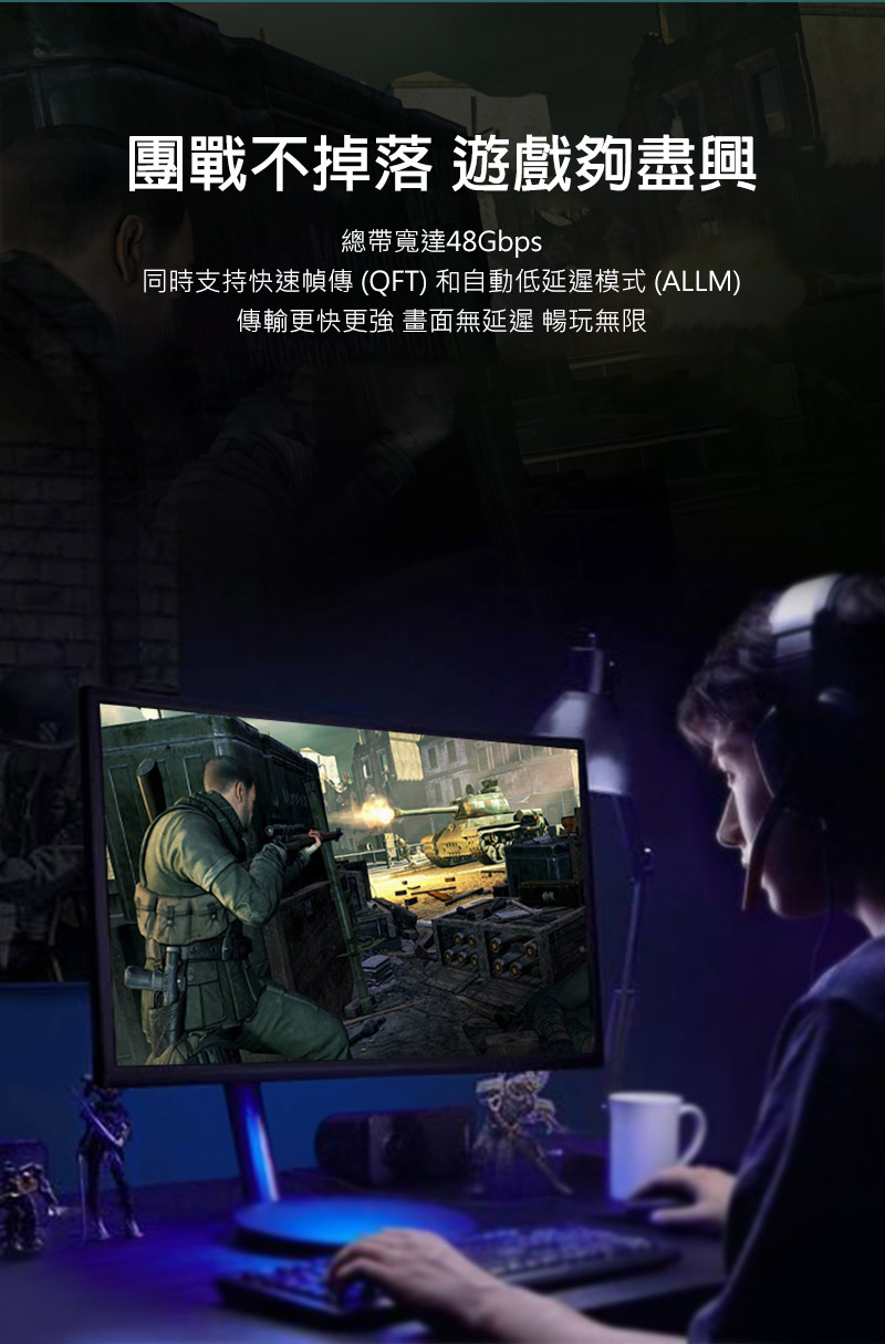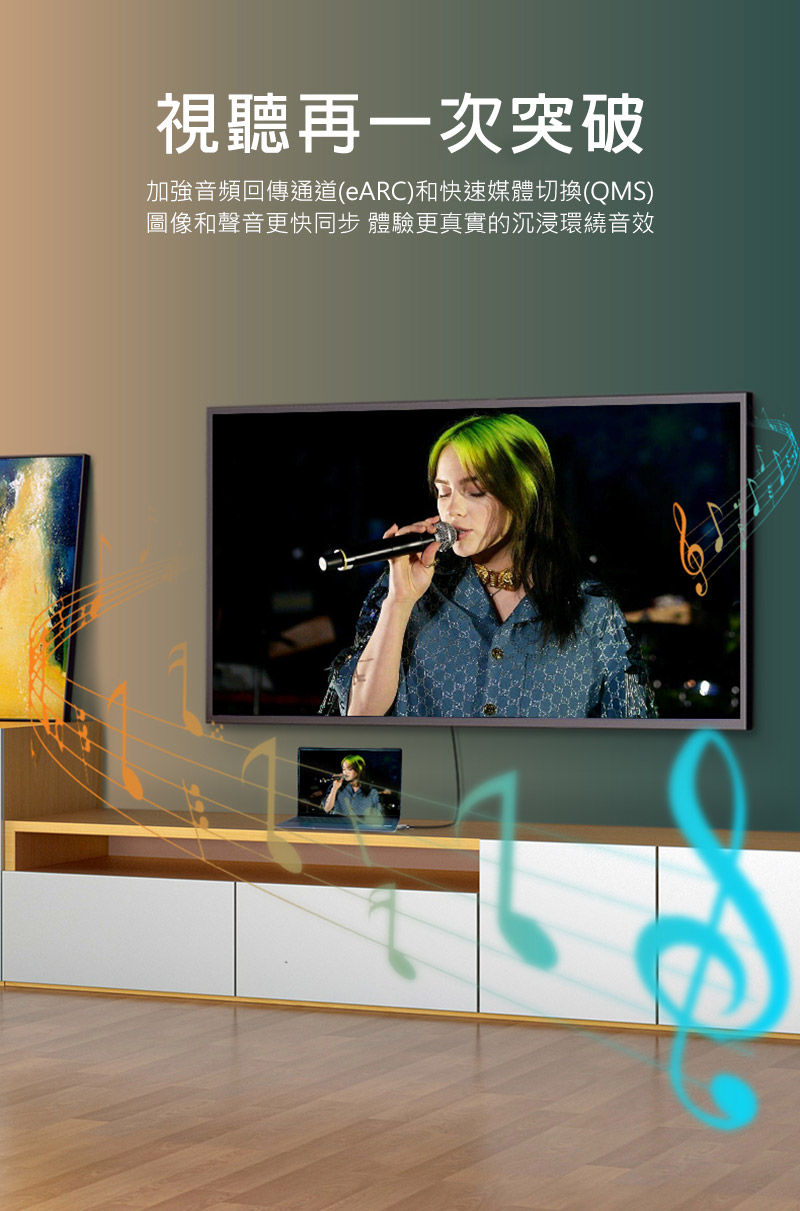 .動態 HDR,提供更多動態範圍和圖像細節.支援 eARC 與 QMS,圖像和聲音更快同步.支援 VRR 可變刷新率,無卡頓,無撕裂.外批採用高強度尼龍網交織,強韌抗拉扯,耐彎折
