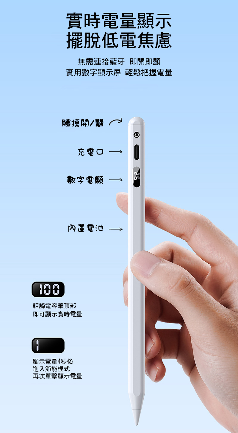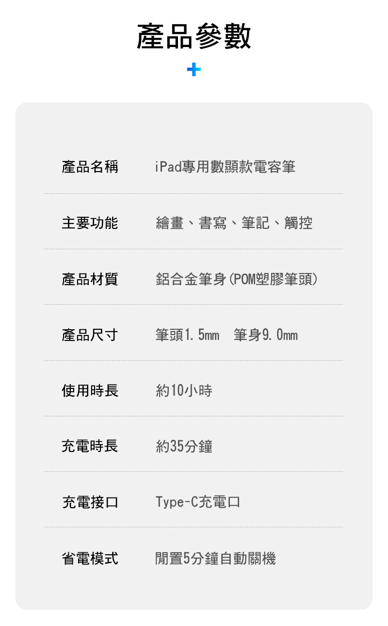 .內容物:數顯款電容筆*1、充電線*1