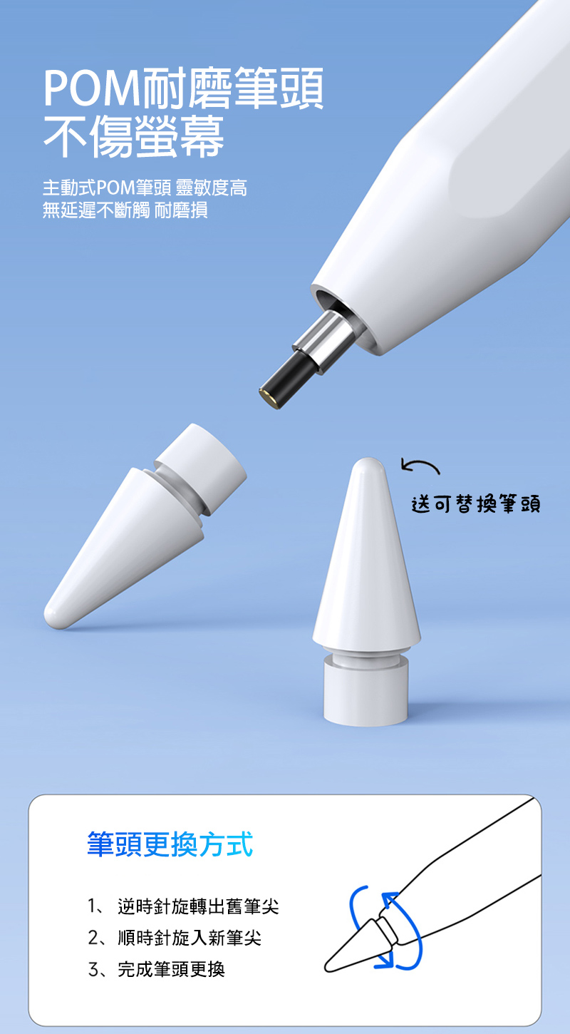 .方便拆卸,筆頭更換簡單.支援 iPad Pro 側邊磁吸,但不支援磁吸充電(仍須使用充電線充電)