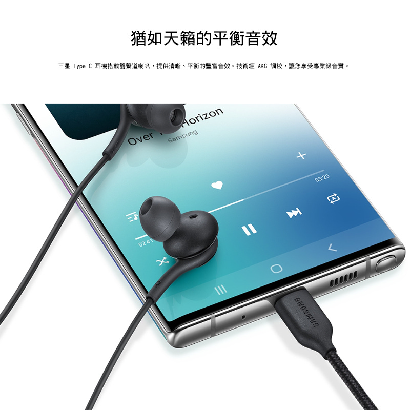 .三星 Type-C 耳機搭載雙聲道喇叭,提供清晰、平衡的豐富音效
