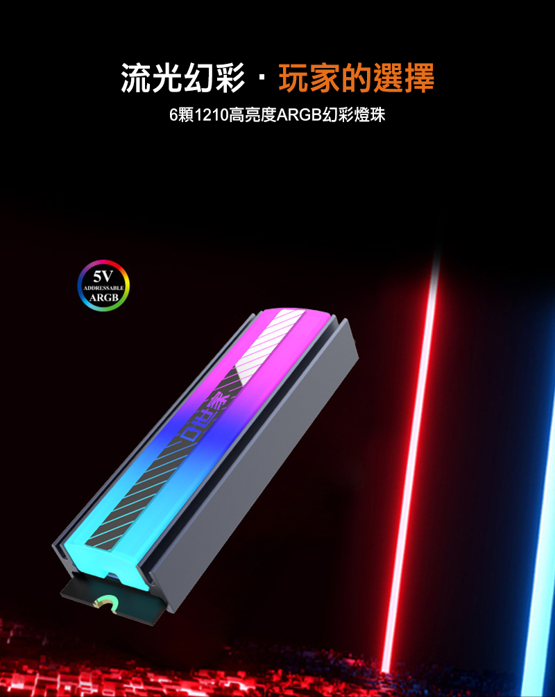 .支援各廠 ARGB 同步,6 顆 1210 高亮度 ARGB 幻彩燈珠
