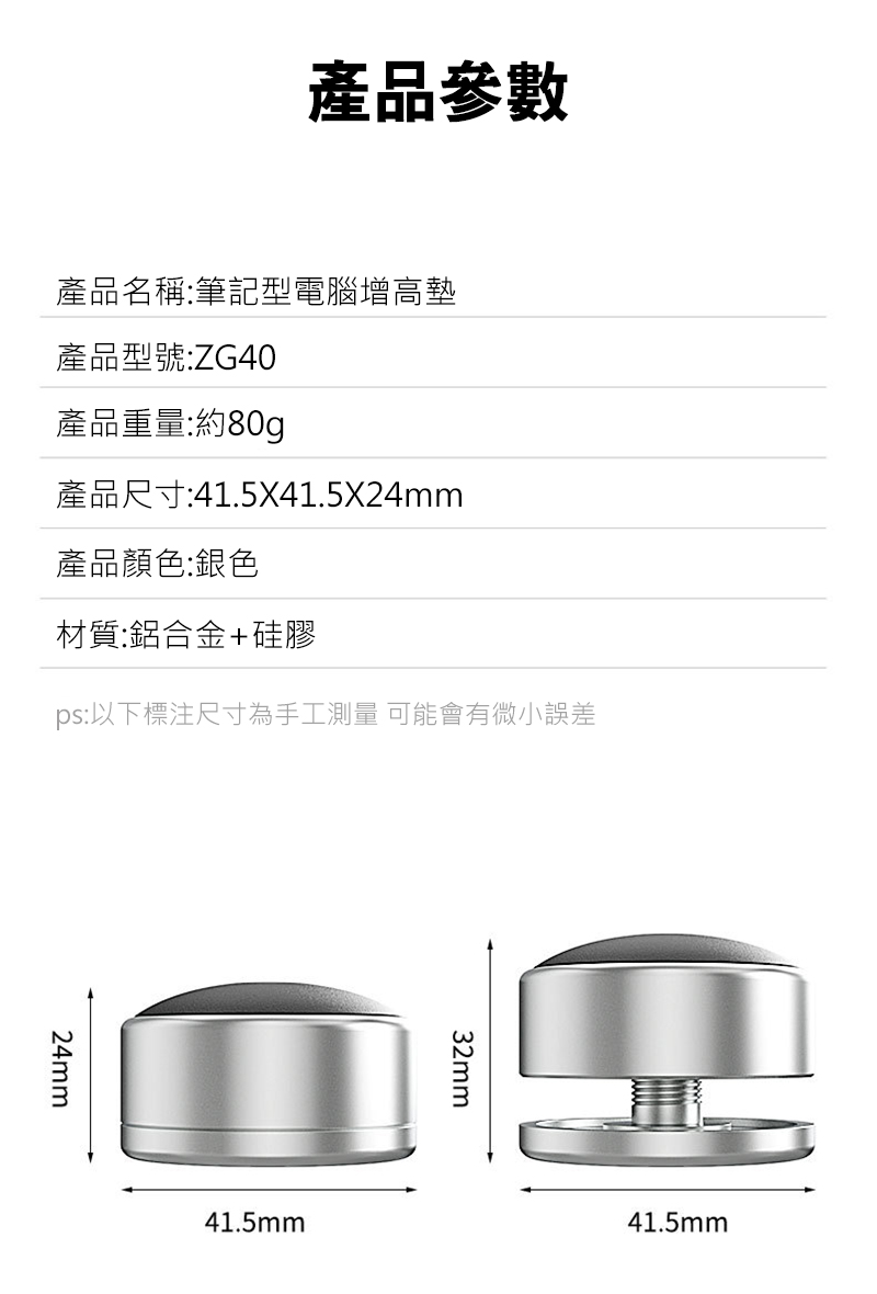 - ZG40 筆記型電腦散熱增高墊*1