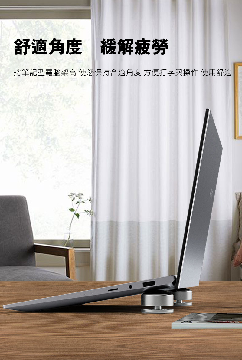 - 筆電架高後,角度更舒適,打字更快捷