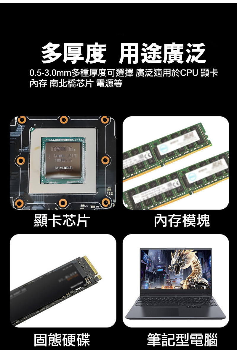 - 適用機種:SSD/顯示卡/記憶體(可自行裁剪適合大小)
