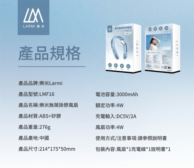 .品名:樂米無葉掛脖風扇