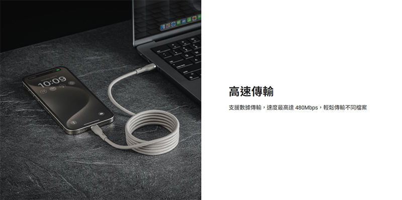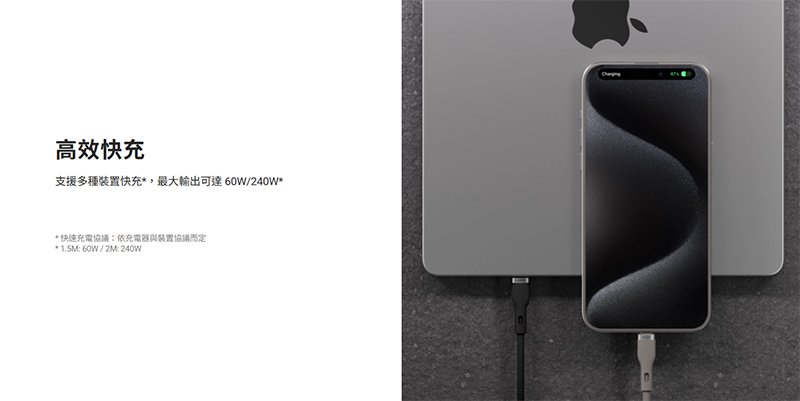 .外層由 48 支尼龍編織而成,提升整體耐用性,通過測試可 5 萬次彎折 * 彎折測試角度:60°