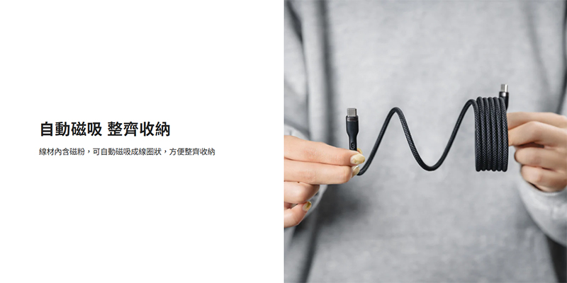 線材內含磁粉,可自動磁吸成線圈狀,方便整齊收納