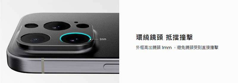 環繞鏡頭,抵擋撞擊,外框高出鏡頭 1mm