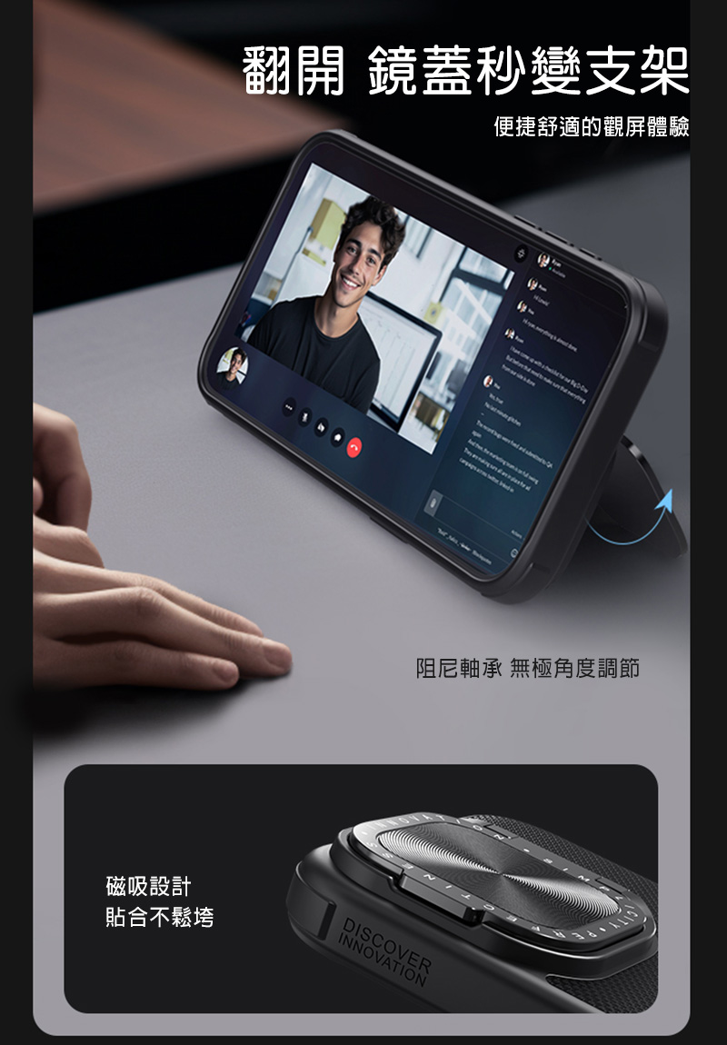 .磁吸翻蓋式鏡蓋設計,開合更輕鬆,兼顧鏡頭保護和手機支撐功能