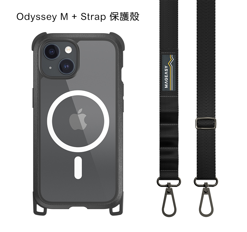 - Odyssey M 保護殼*1、掛繩*1、可拆式 AIR-SHIELD 邊角防摔氣墊*2
