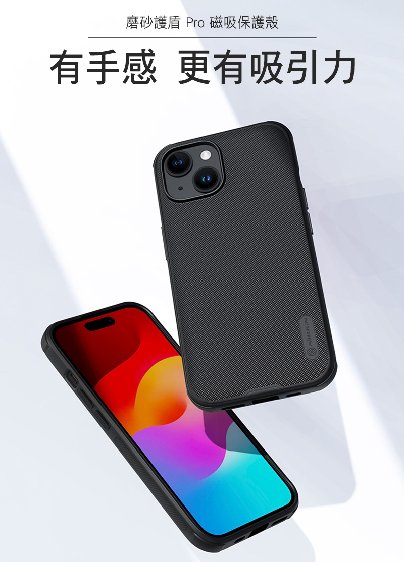 .磨砂護盾Pro磁吸保護殼,專為iPhone MagSafe 系列產品設計,內置磁體,可讓手機吸附 MagSafe 充電器或皮革卡包