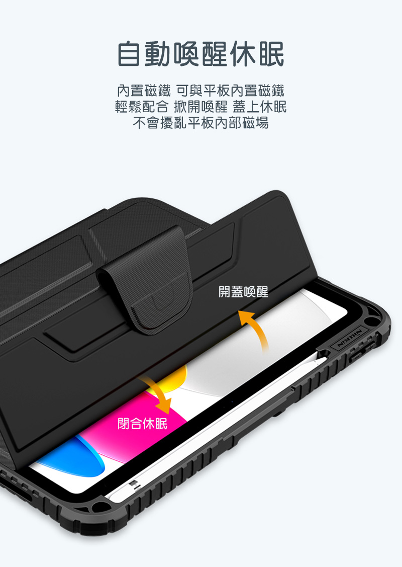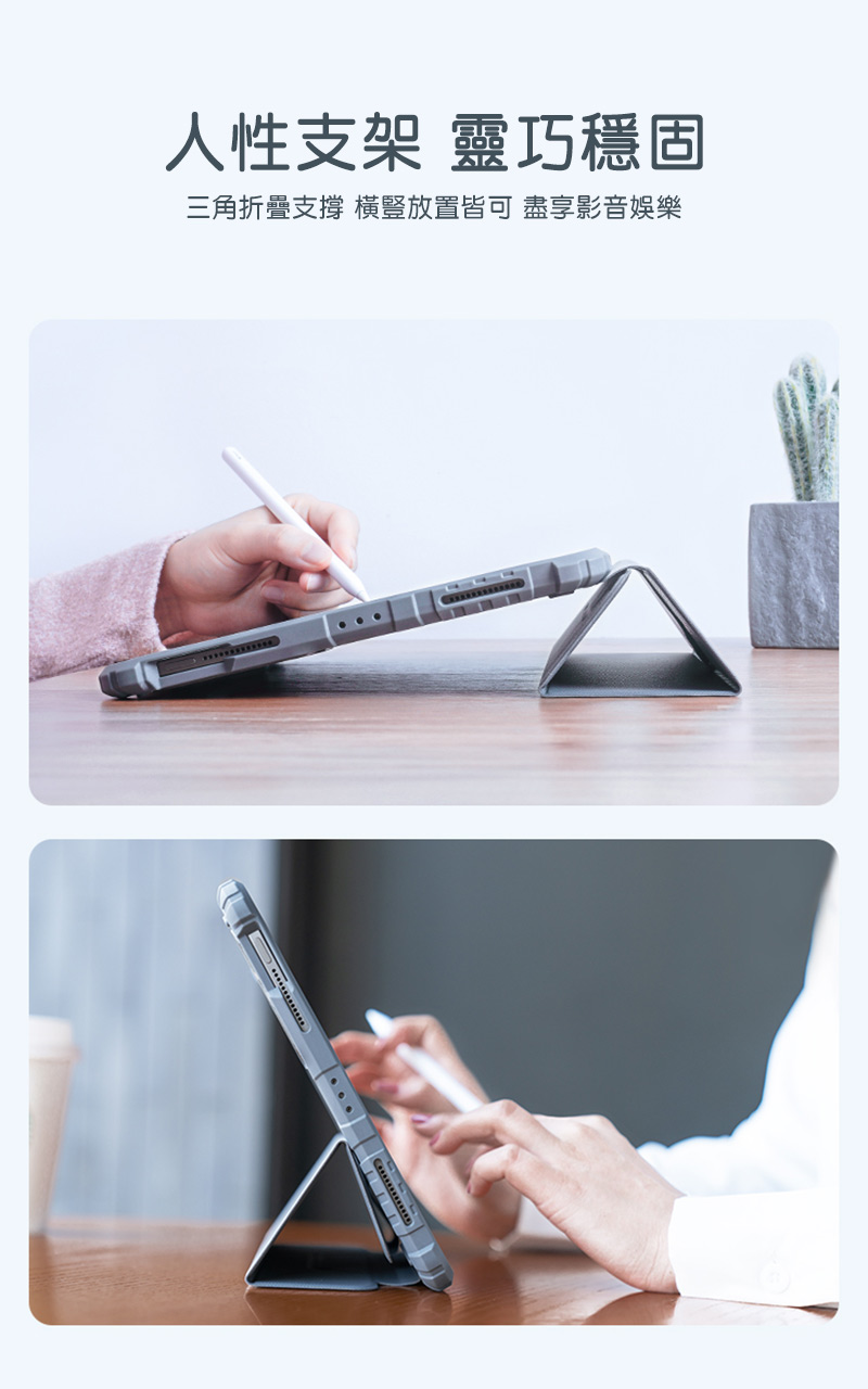 .面蓋搭扣內置磁吸,帶休眠/喚醒功能,省心省電,面蓋還可三角折疊,變身橫豎兩用支架,影音娛樂,釋放雙手