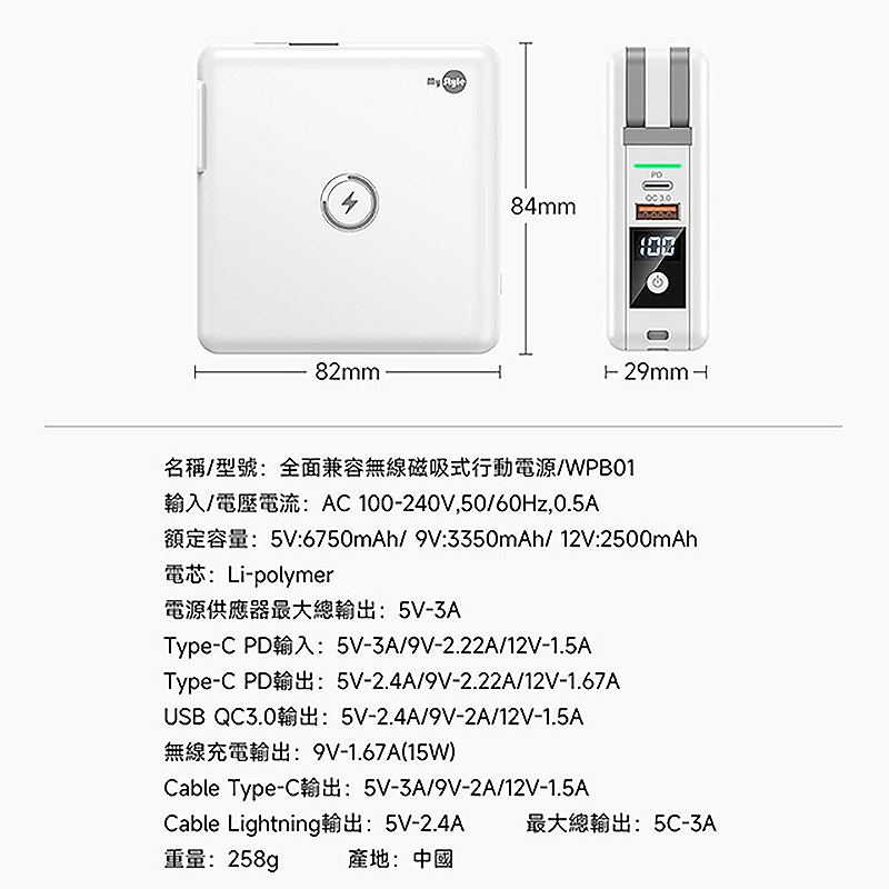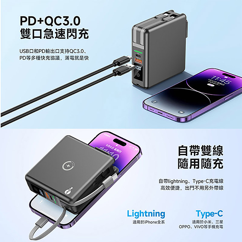 .內 容 物 : 多功能無線充電+自帶線行動電源*1