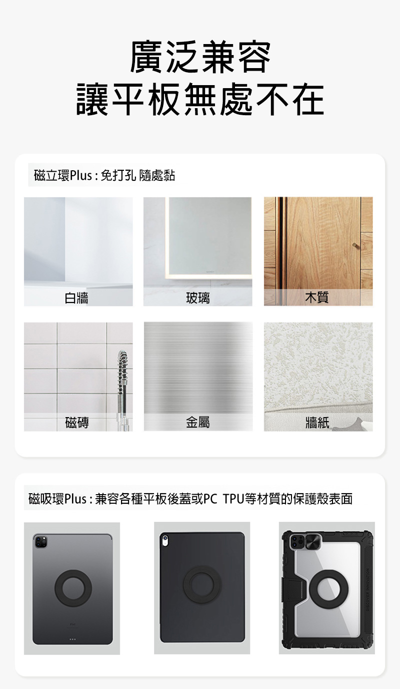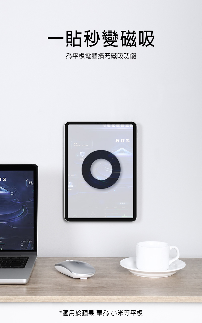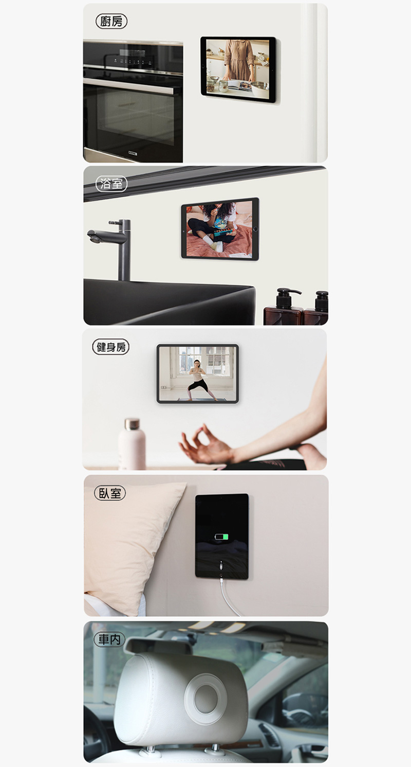 .磁立環Plus,可以將平板電腦安裝在牆壁、冰箱、鏡面等各種平面上