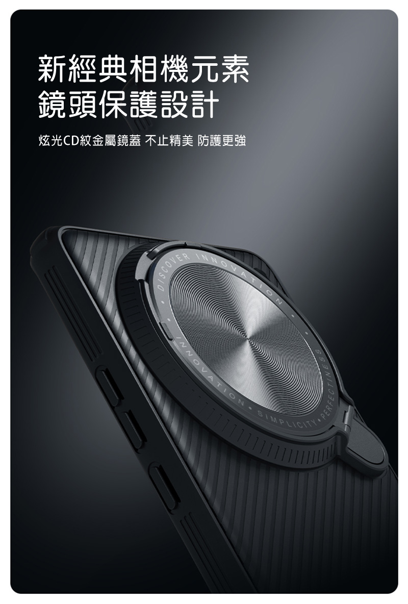 .翻蓋式炫光CD紋鏡蓋,精緻耀目,可提供支架功能