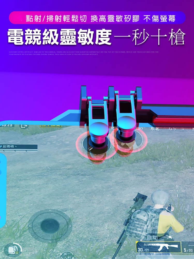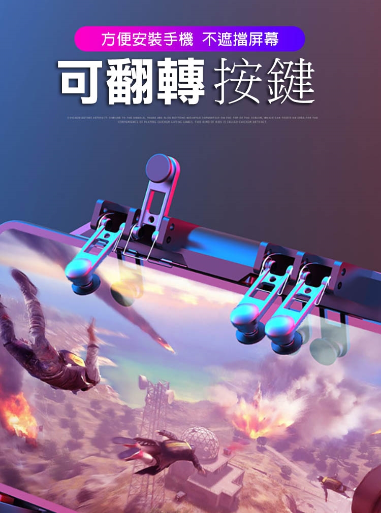1.翻轉按鍵 方便安裝手機不遮擋螢幕2.進入遊戲自定義設定後 將定義控鍵移置翻轉按鍵區