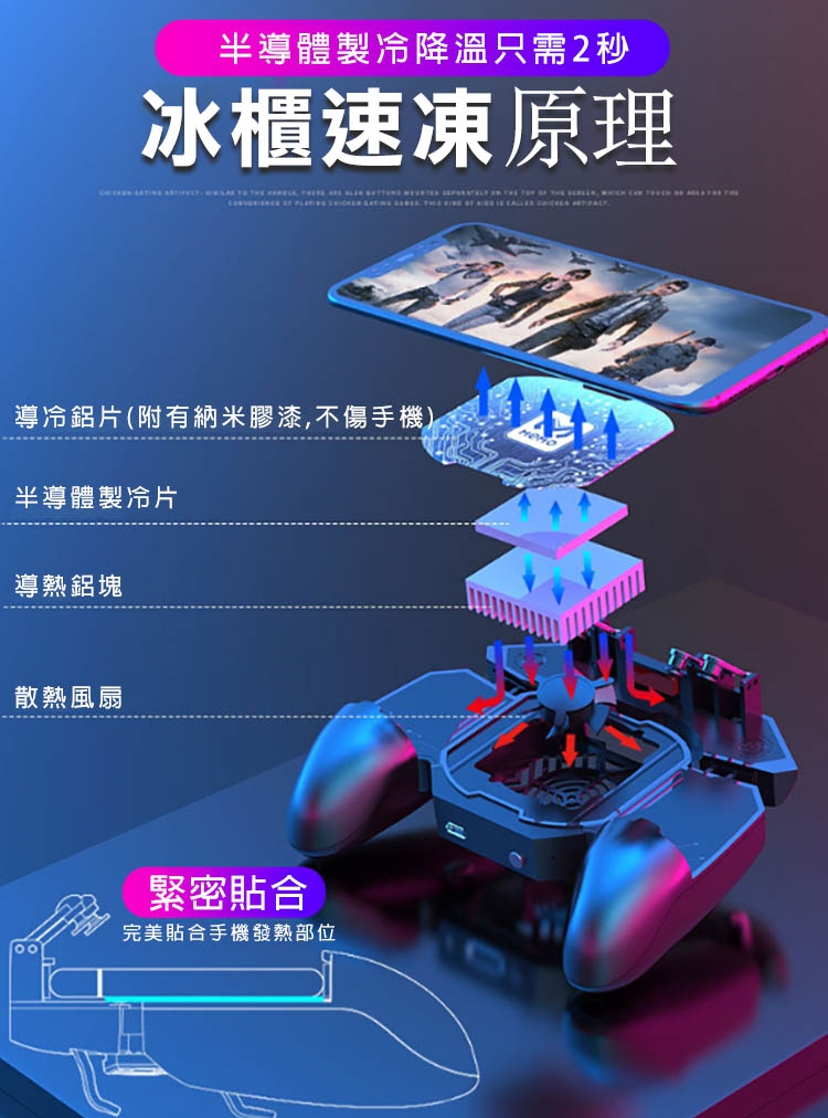 1.熱風不吹手/不擋手 冰凍散熱器吹的熱風不會吹到手 預留手指操控位置不影響原操作手感