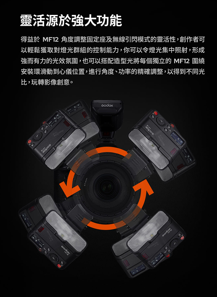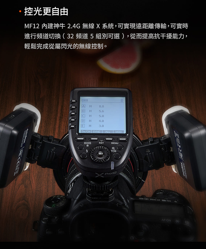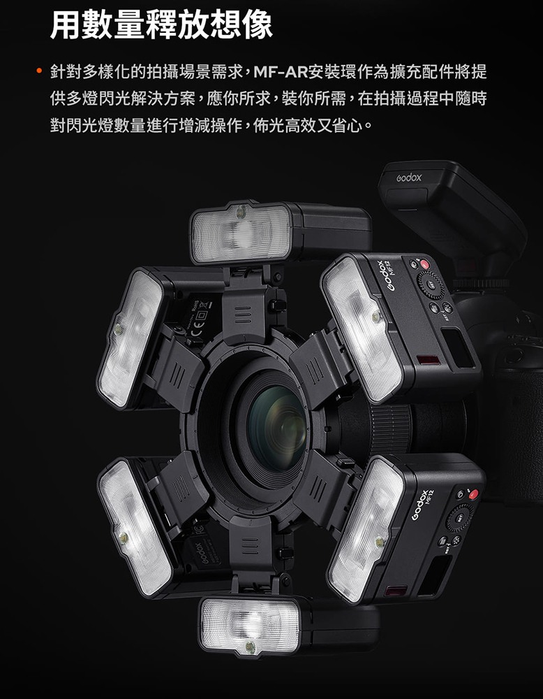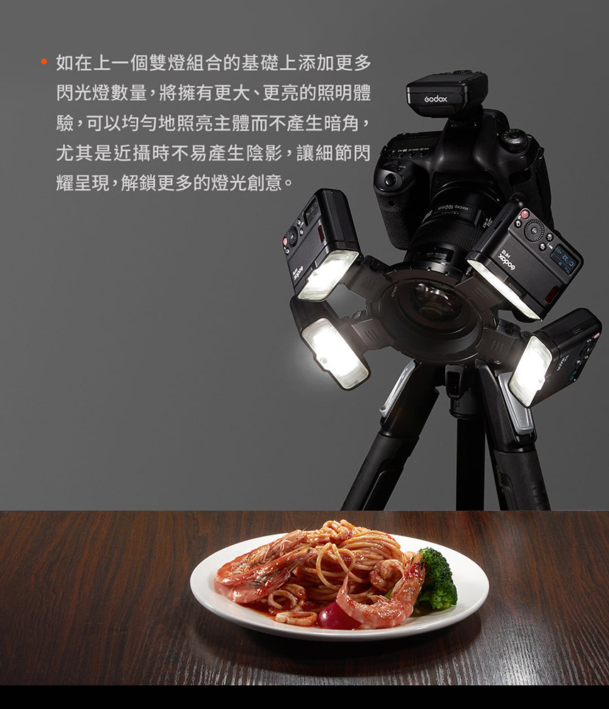 本產品為雙燈套組,內含兩個閃光燈,不含相機及鏡頭、閃燈觸發器。本產品最多可以安裝六個閃光燈,另外4燈需要另外購買。