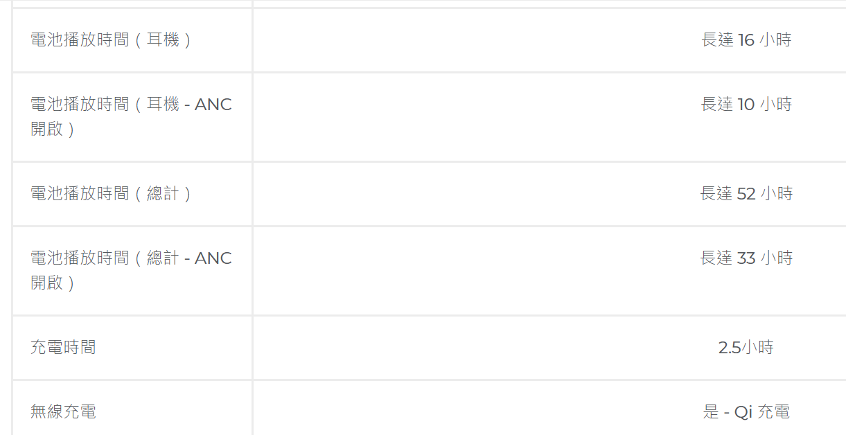 長時間播放電池–最長10小時+23小時(主動降噪功能打開),16+36小時(主動降噪功能關閉)