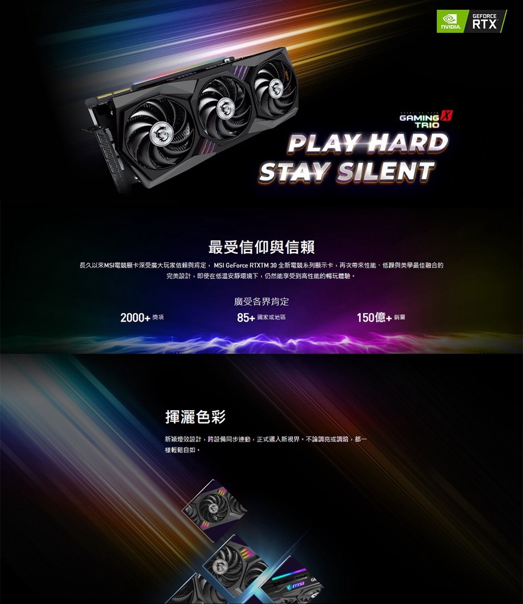 透過Ampere(NVIDIA第二代RTX架構)提供遊戲玩家渴望的超高性能。
