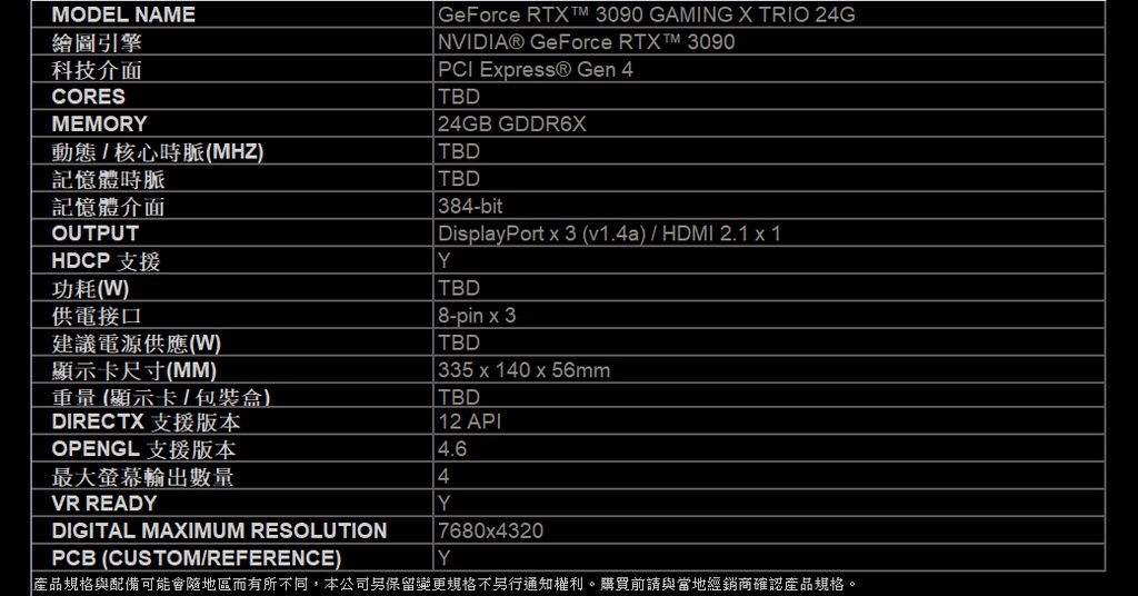 ◆ 顯示晶片 :NVIDIA® GeForce® RTX 3090