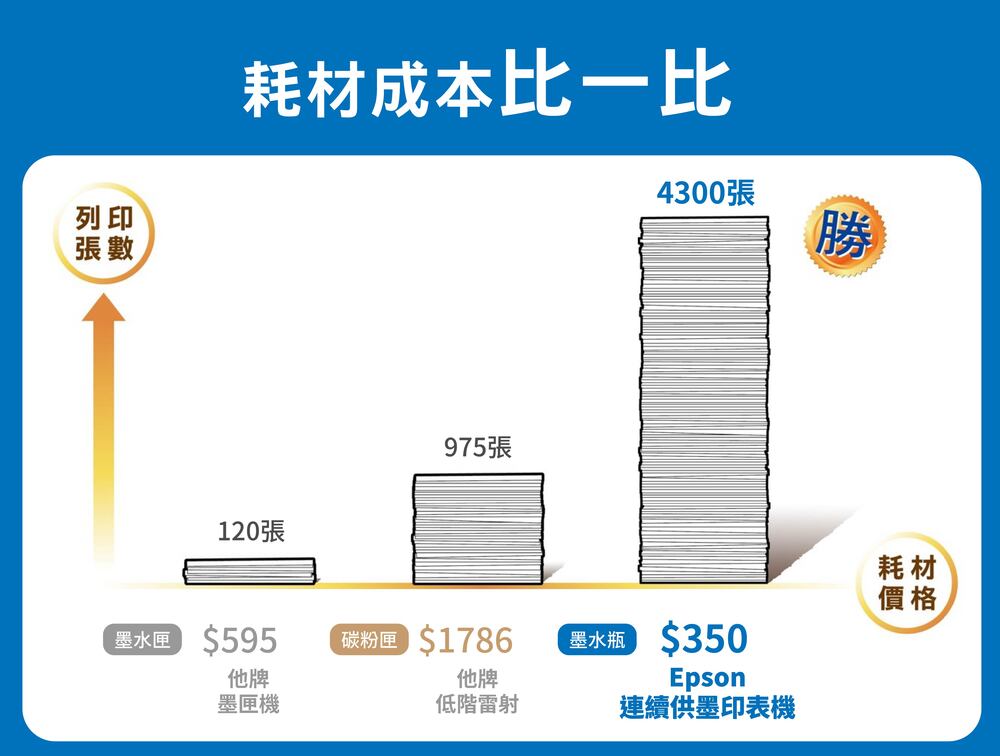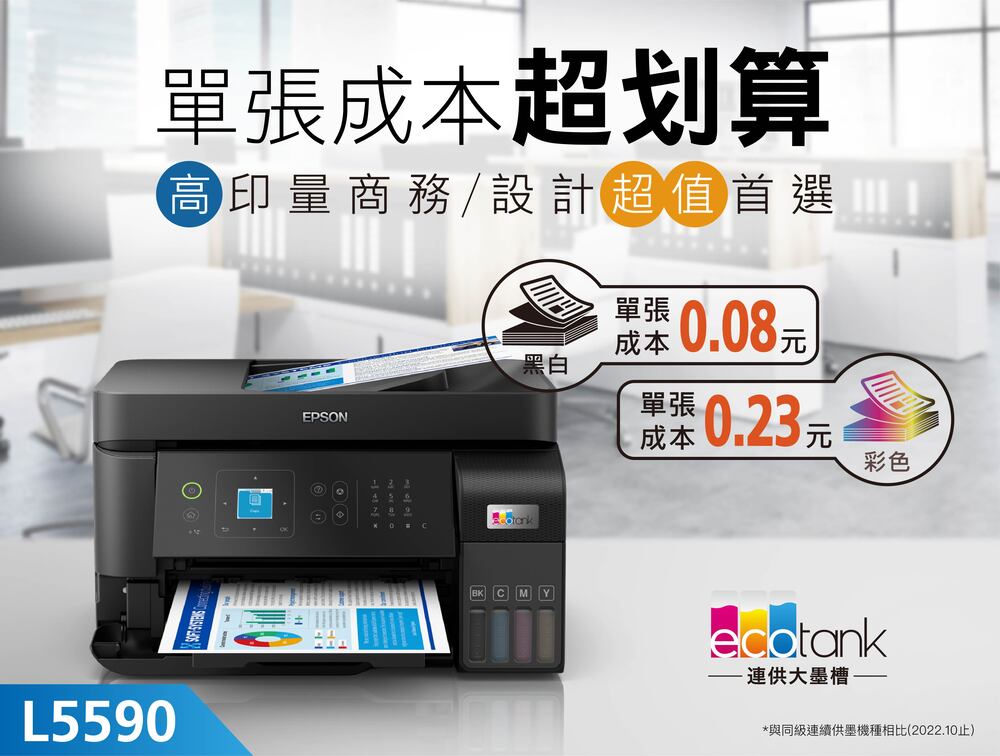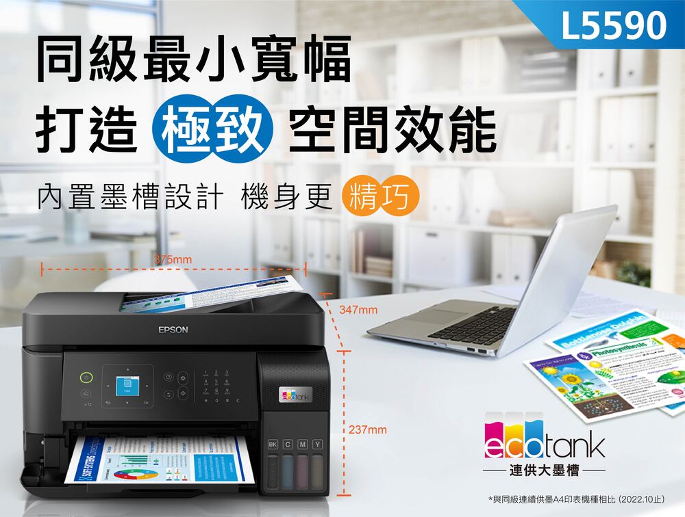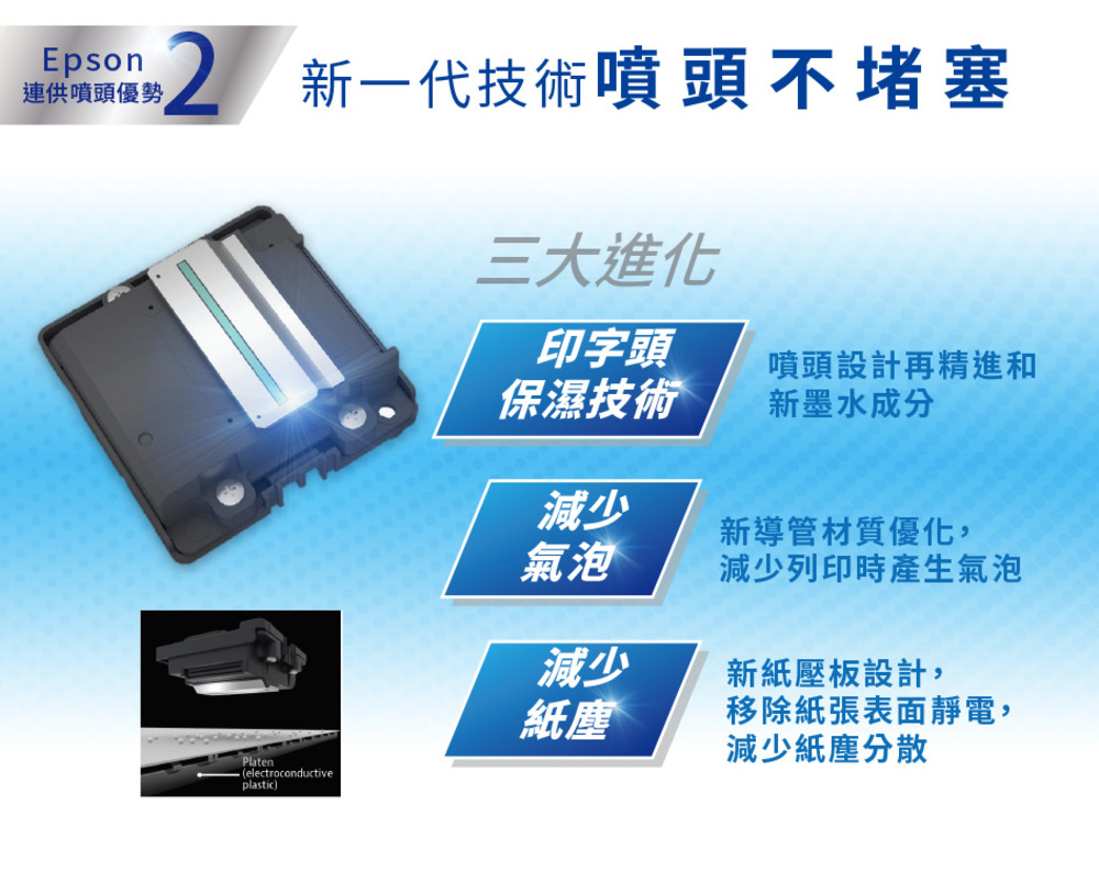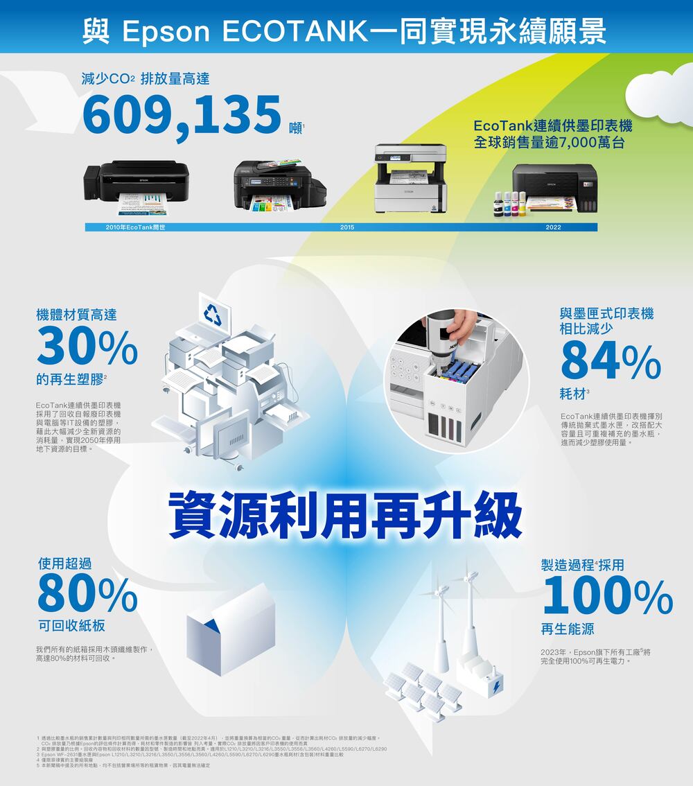 ‧全新系列連續供墨印表機採用高達30%可回收塑膠材質,外包裝也使用將近80%可回收紙材