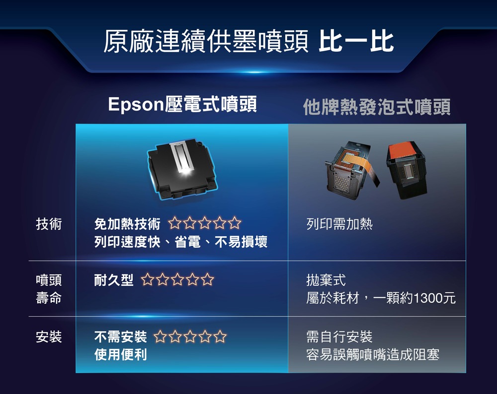 ‧Heat-Free免加熱技術,與雷射印表機相比能夠更省時、省電、省耗材