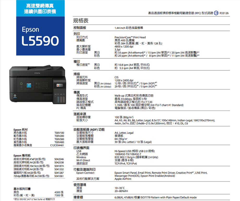 ‧高速鮮豔模式:20/11ipm(黑/彩)