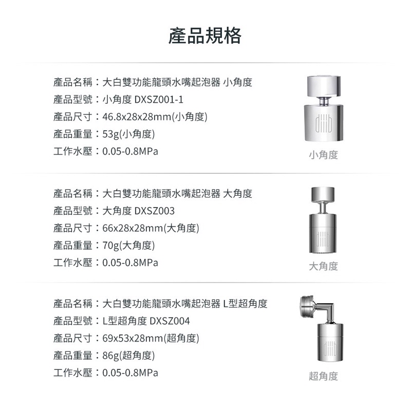 📌 單/雙球頭 兩種規格 拓展用水範圍