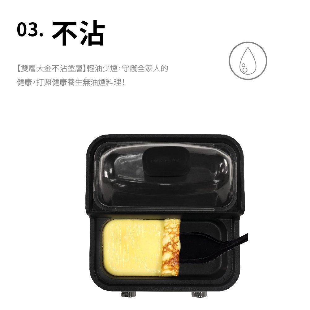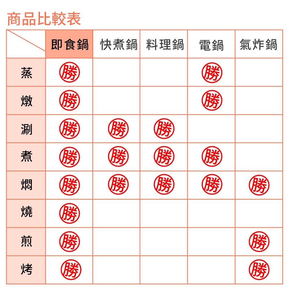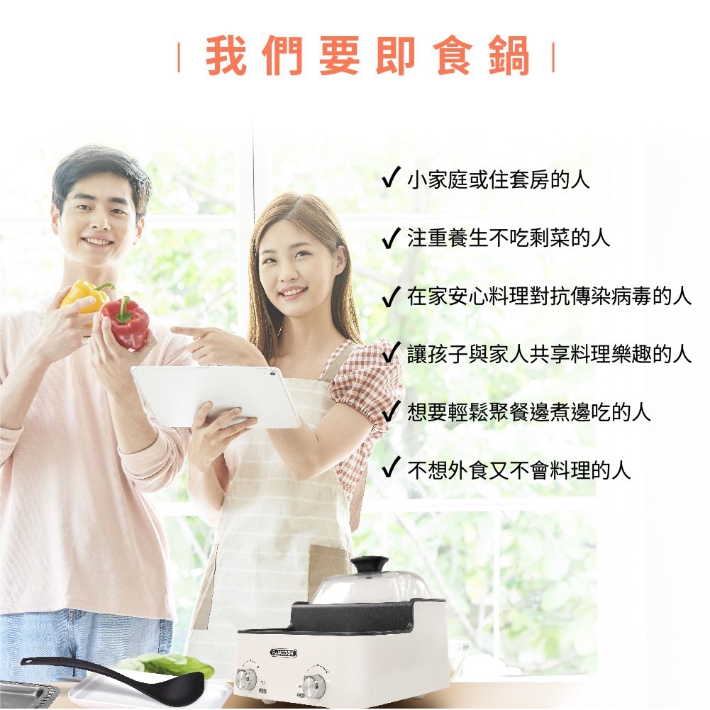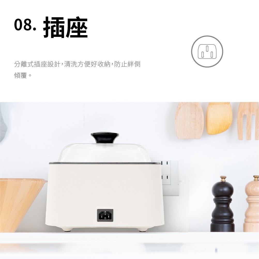 史上最高顏值、多功能即食鍋!1. 128張專利,首創鍋爐一體,同步完成多項料理2. A4尺寸精巧使用,隨處任煮好自在3.日本大金不沾塗層,易煮好清,真輕鬆4.電木彩色外殼,防燙耐熱不導電,使用好安全5.鍋緣加高設計,烹煮不油濺,安全又清潔6.挑高玻璃鍋蓋設計,蒸煮食物無油煙7.恆溫控制、超溫斷電,安心使用8.分離式電源線設計,清洗無負擔,輕鬆好收納9.底盤隱藏把手,輕鬆移動又美觀10.全機可水洗,您最煩惱的部分,我們已經設想好了11.鍋蓋四角散熱設計,易掀不燙傷