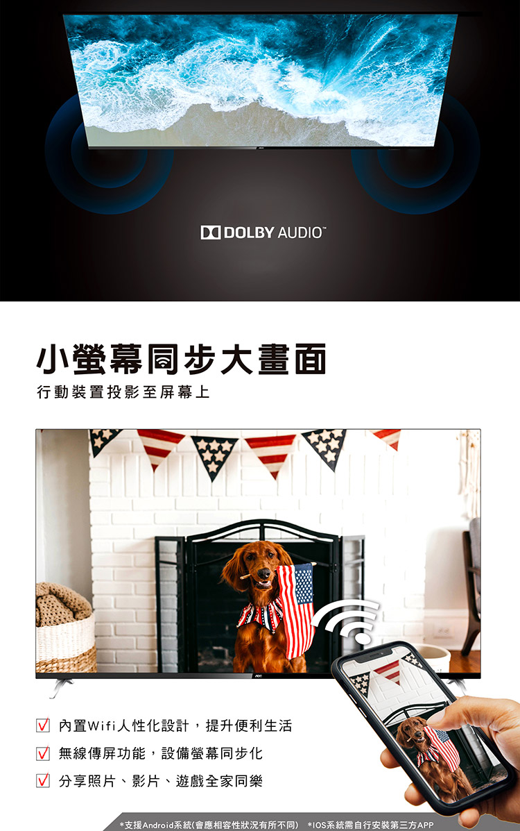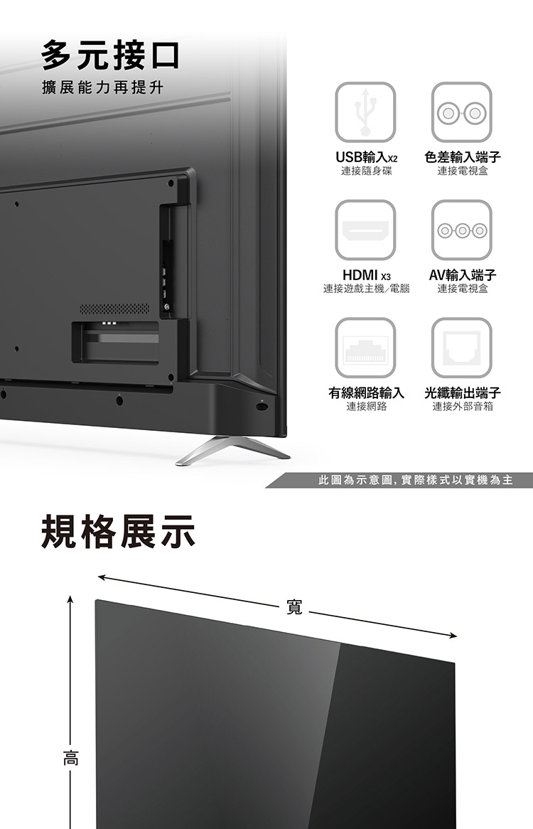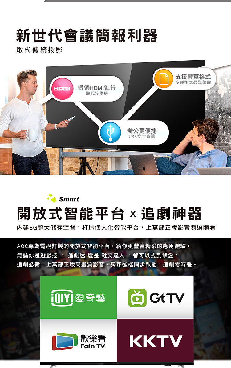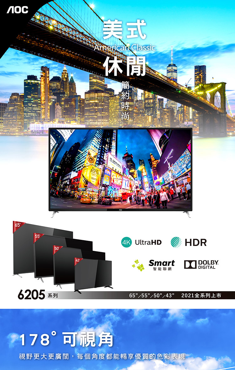 【AOC】65吋4K HDR聯網液晶顯示器+視訊盒65U6205 {{specImage.SkuName}}