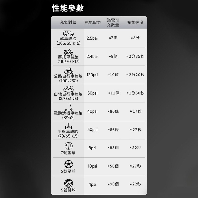 🏷 充氣壓力範圍:0.2-10.3bar/3-150psi