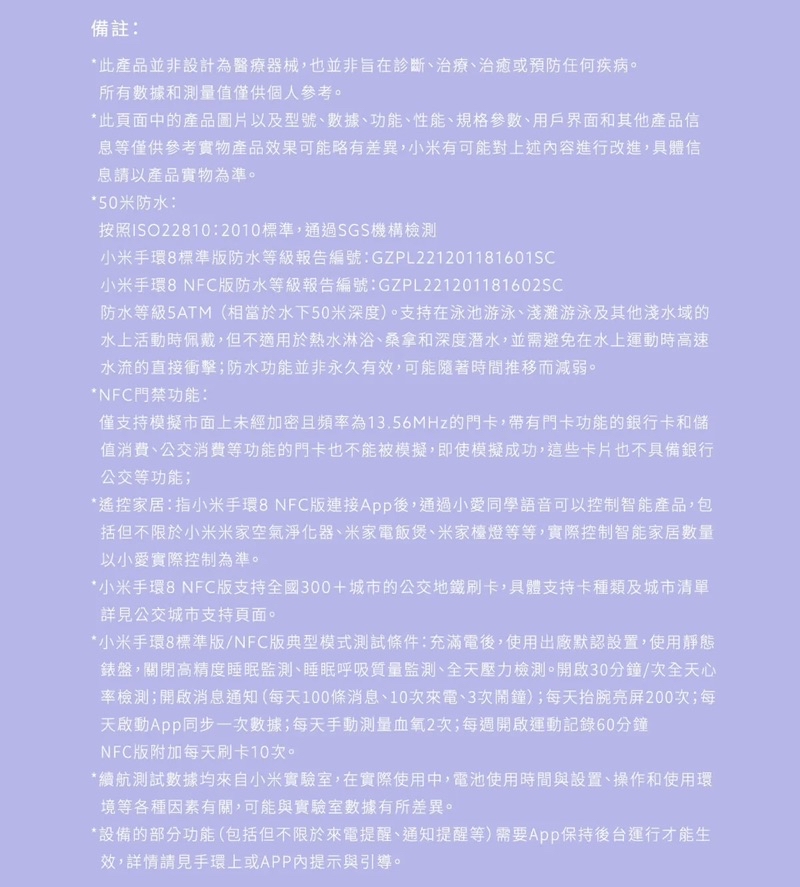 小米手環8 標準版/NFC版 台灣保固一年 Xiaomi