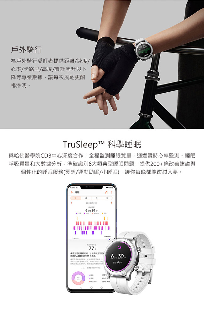 ◎特色功能 心率監測、訓練即時指導、多種運動數據、智慧提醒助手、睡眠監測