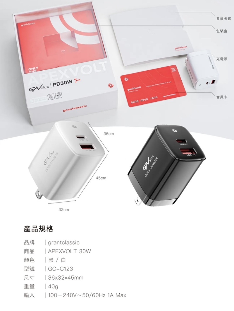 grantclassic ApexVolt PD30W GanUltra 充滿快樂 電源供應器