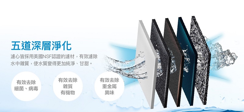 為一般淨水器及RO逆滲透的第三道濾心,可過濾更微小之雜質及第二道活性碳濾心所產生之碳粉微粒,避免影響RO膜阻塞。使用壽命為六個月,如超過六個月請將濾心更換,以免細菌滋生於濾心內。