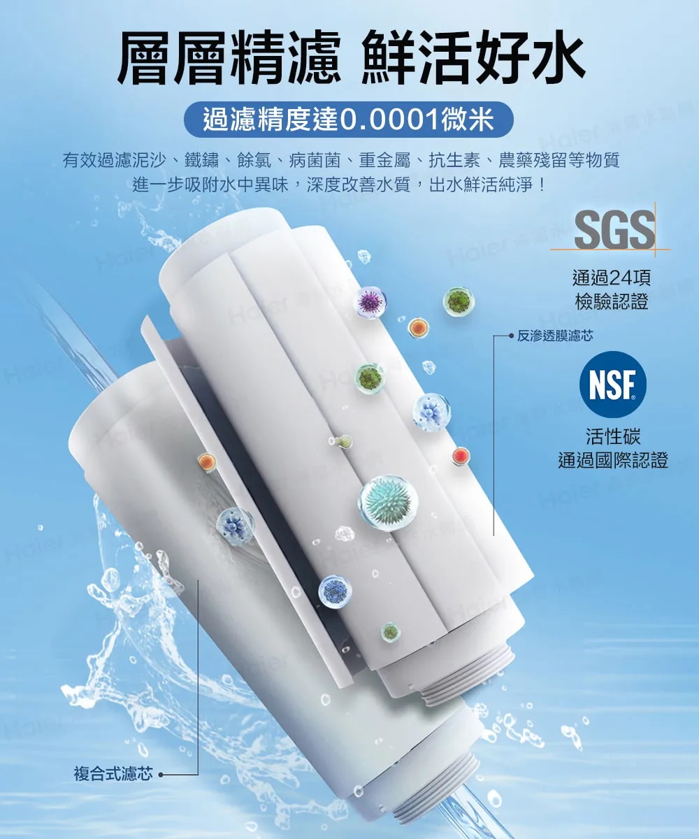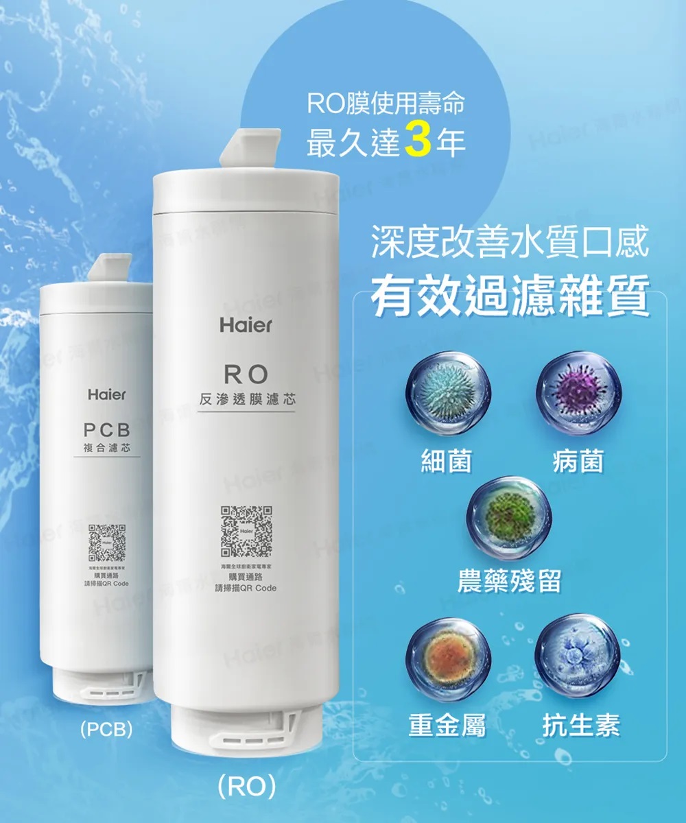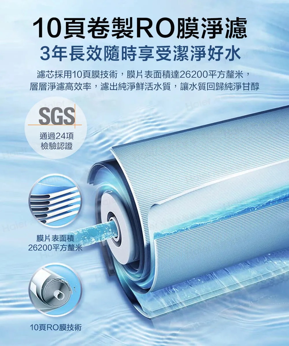 • 10頁卷製RO膜淨濾:3年長效隨時享受潔淨好水