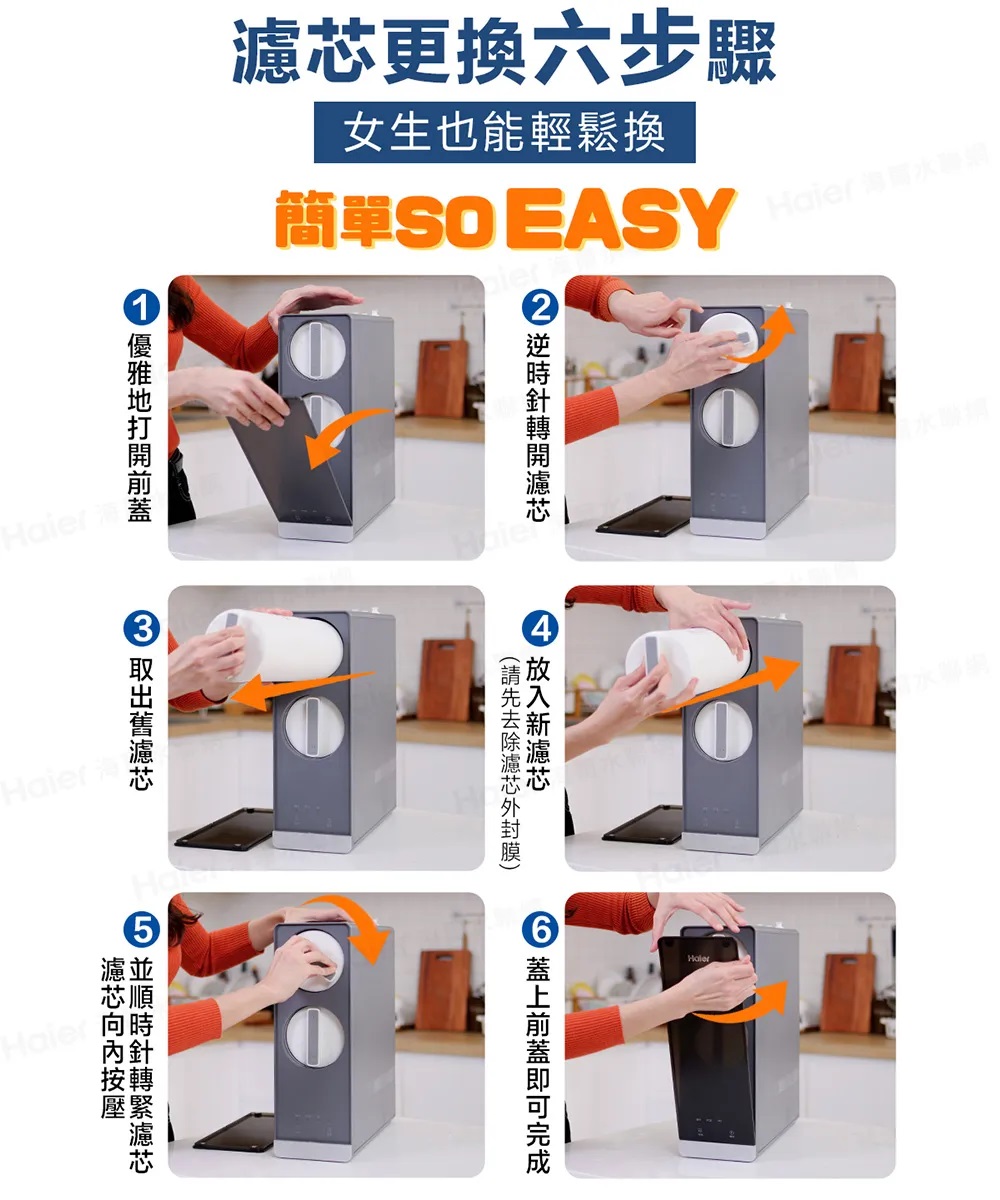• 換芯便利:濾芯更換6步驟,簡單so easy