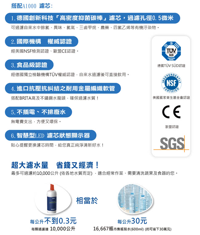 ◆搭配A1000型濾芯特大過濾水量10000公升