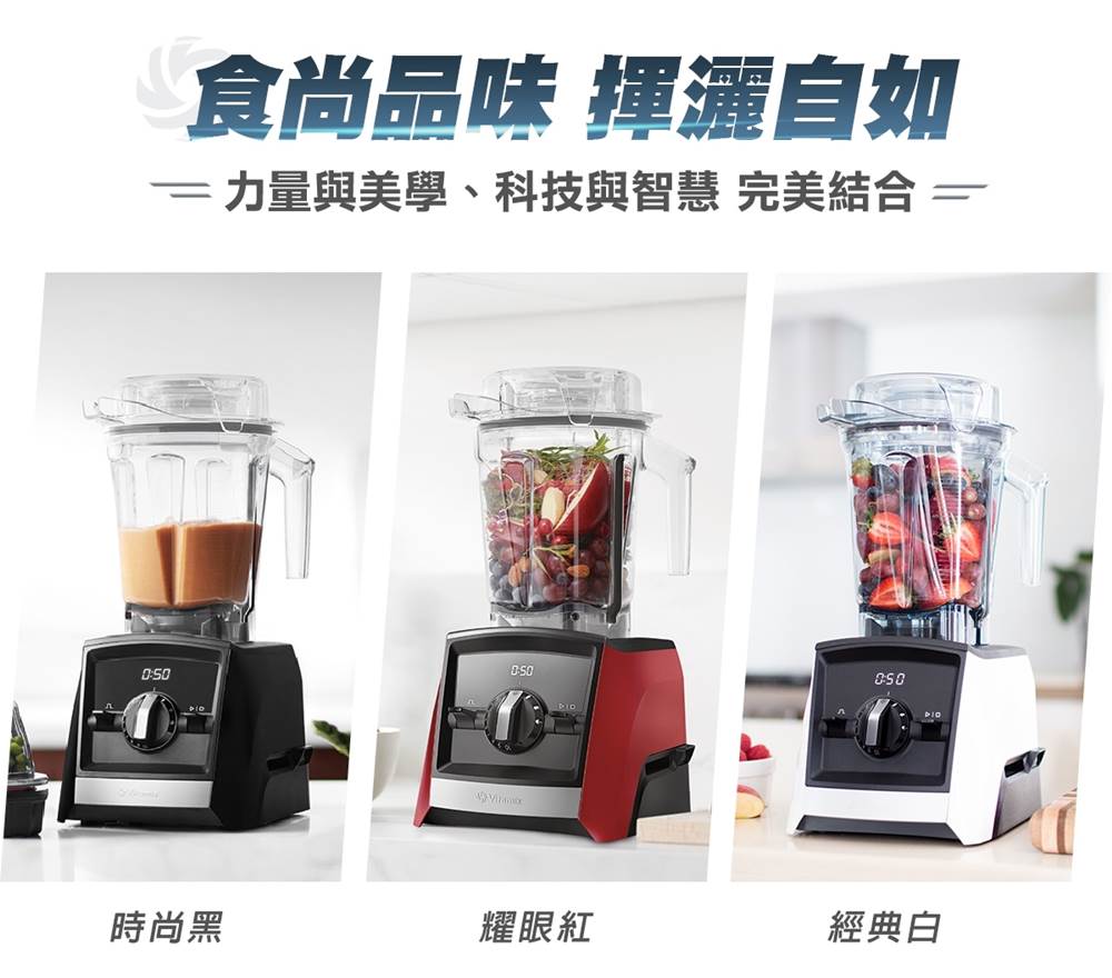 ★食尚品味 揮灑自如,力量與美學、科技與智慧的完美結合,時尚黑/魔力紅/經典白 三色搭配時尚外觀,讓使用A2500i調理機的您,展現過人品味